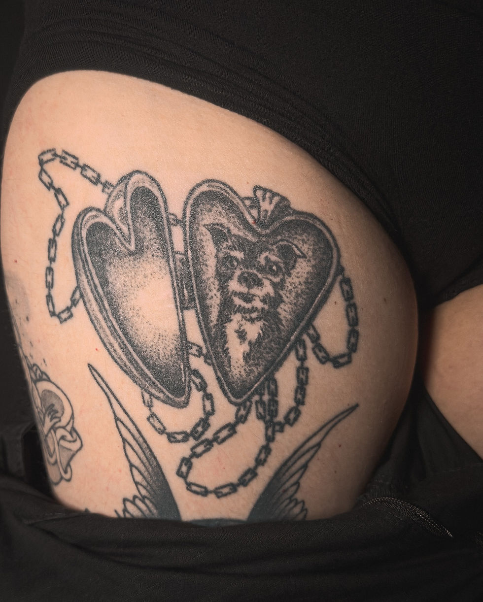 Her hand-poke technique is gentle, heals faster, and creates a unique grainy texture that machine tattoos can’t replicate. Inspired by old-school flash, vintage photography, and a touch of the scandalous, her work has a distinct, timeless feel. She offers a curated collection of prêt-à-porter flashes on Instagram and welcomes custom designs for those who connect with her style.